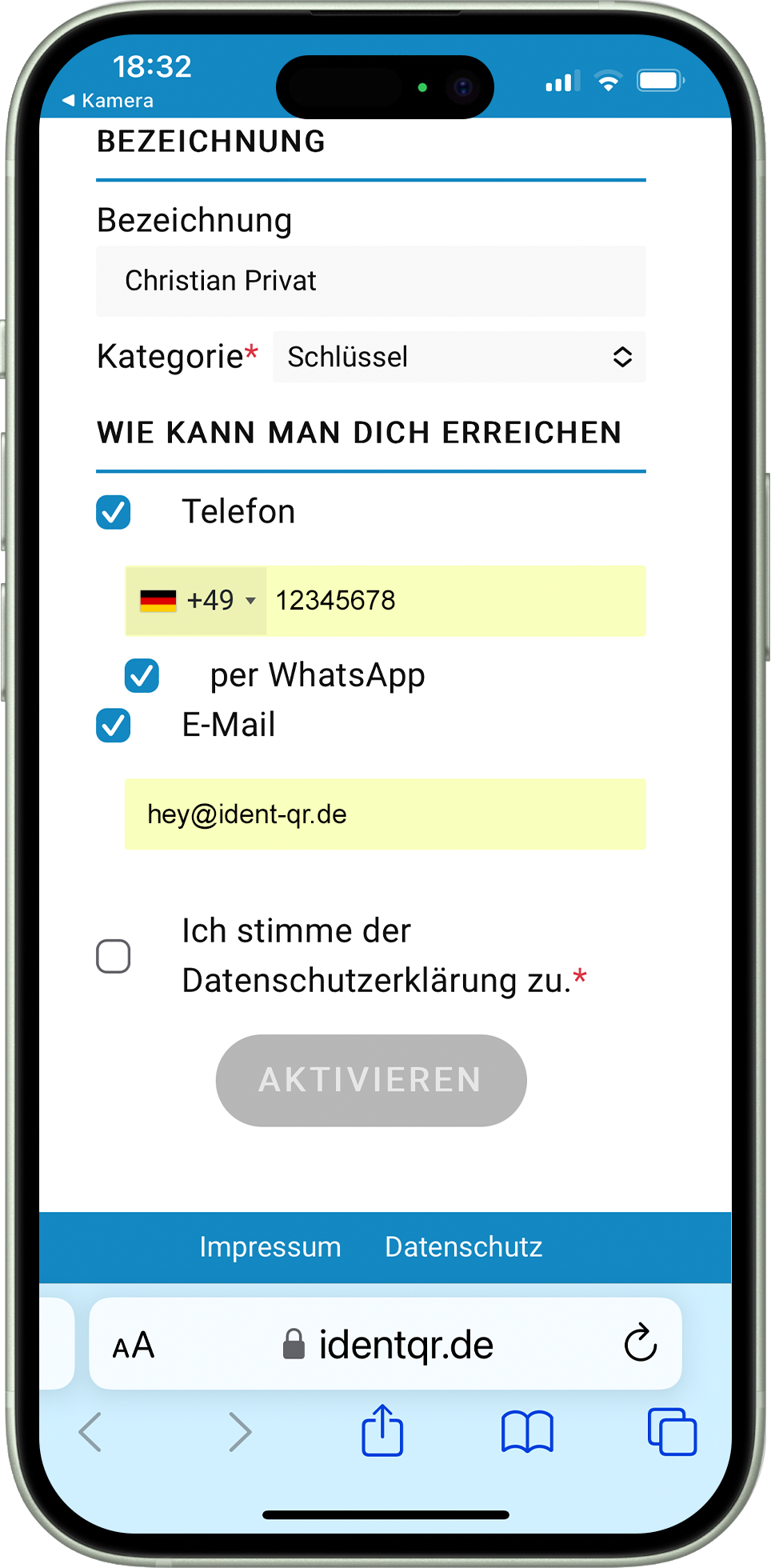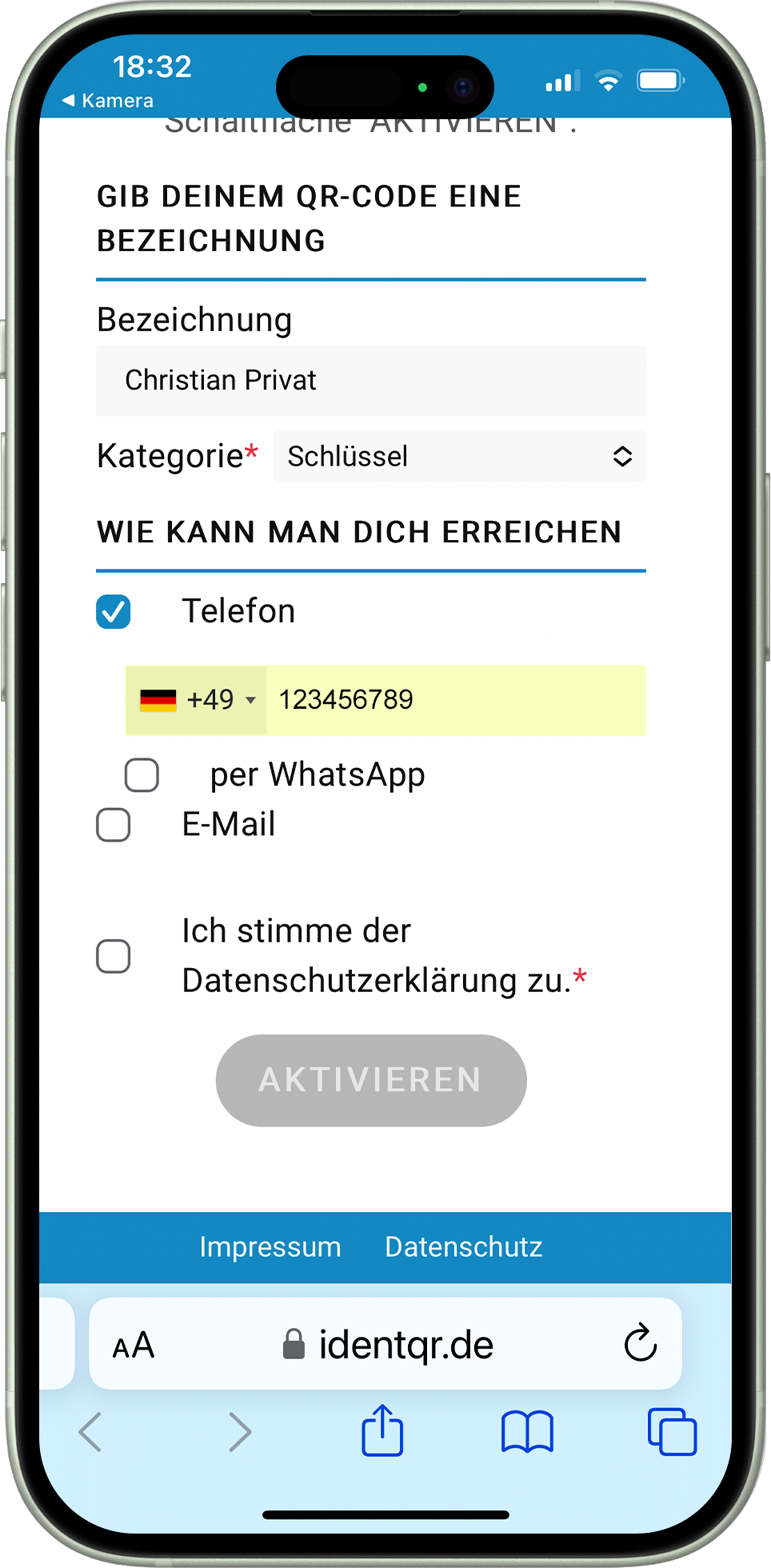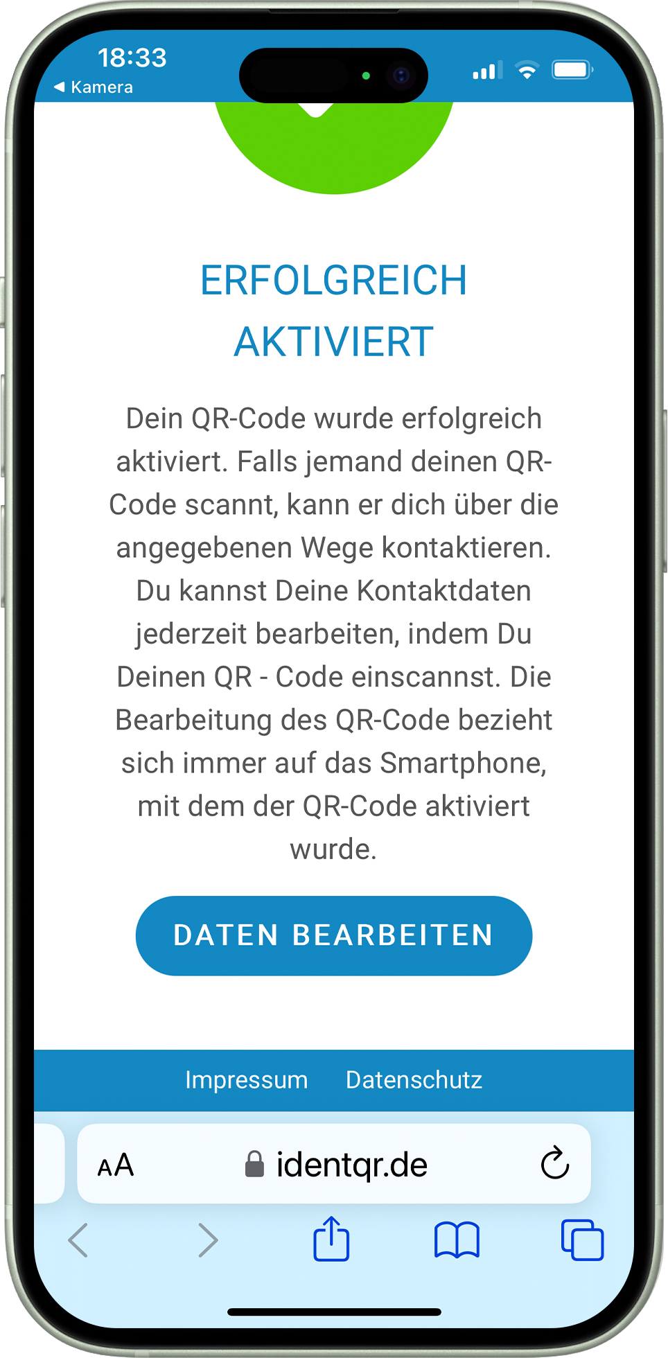 Das Handy mit dem Du einen IDENT-QR aktivierst, ist für diesen und weitere IDENT-QRs das „Masterhandy“. Mit dem Masterhandy kannst Du bei erneutem Scan Deines IDENT-QR sämtliche Einträge in wenigen Sekunden ändern. Tipps hierzu findest Du am Ende der Anleitung.