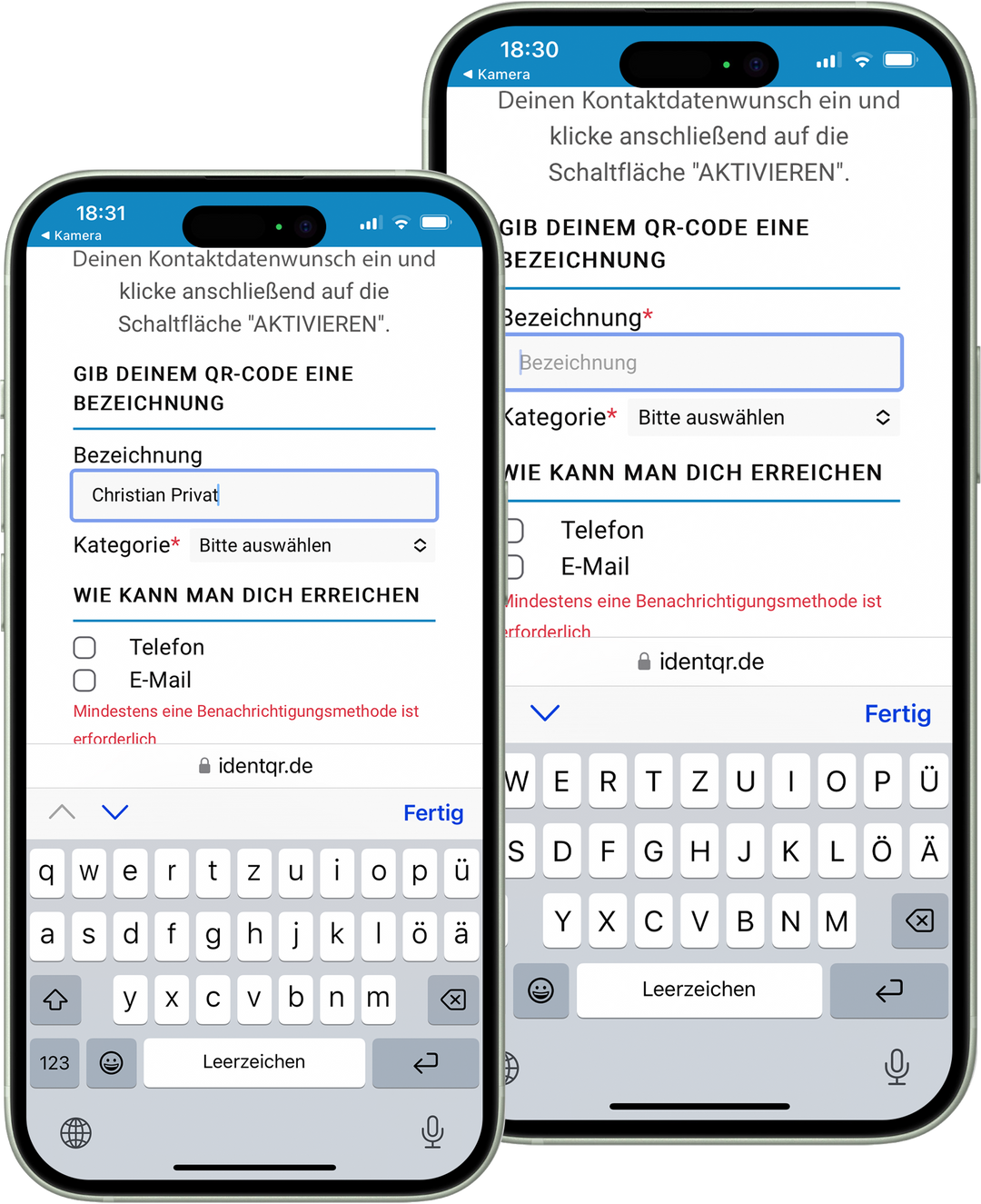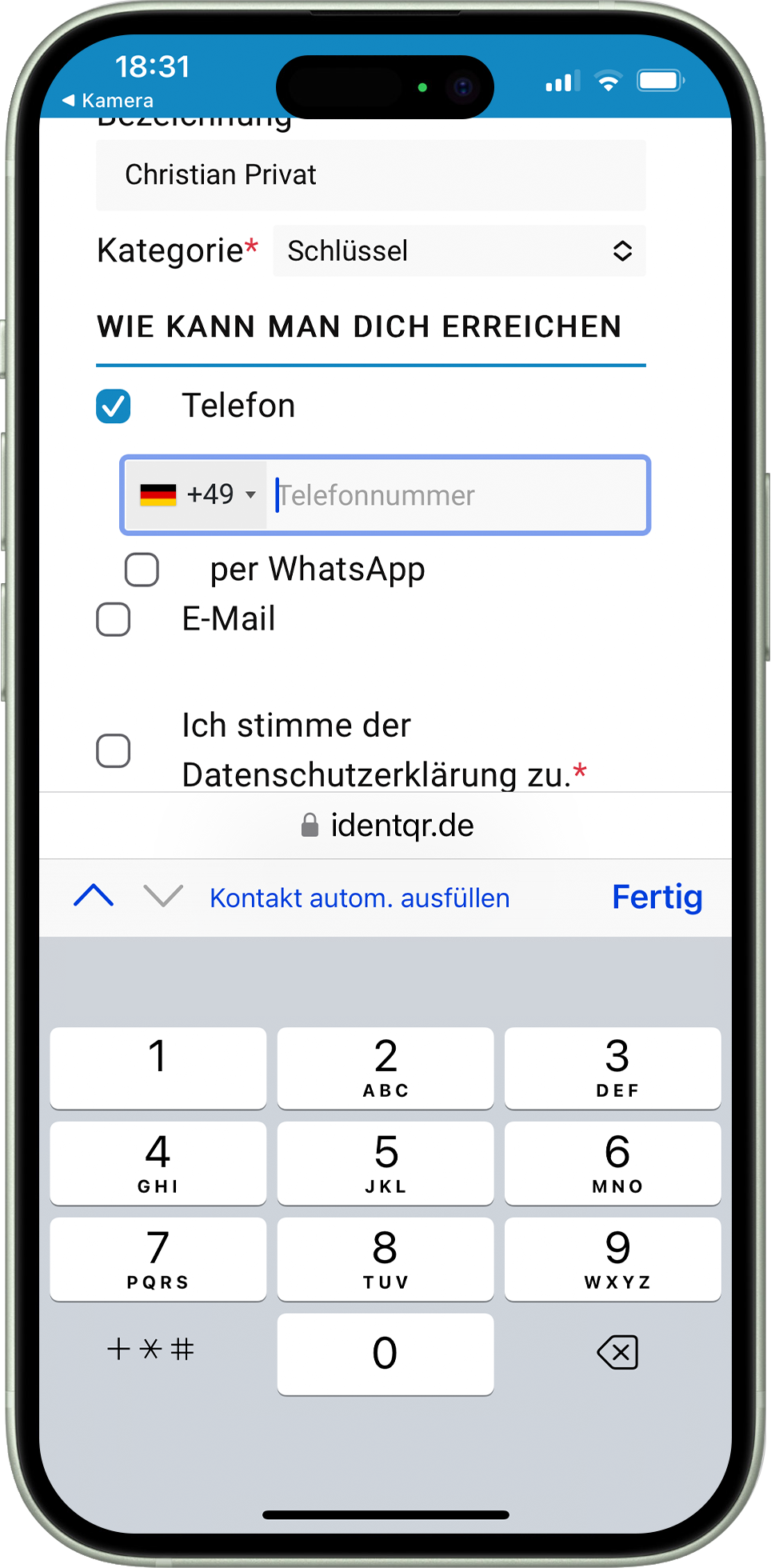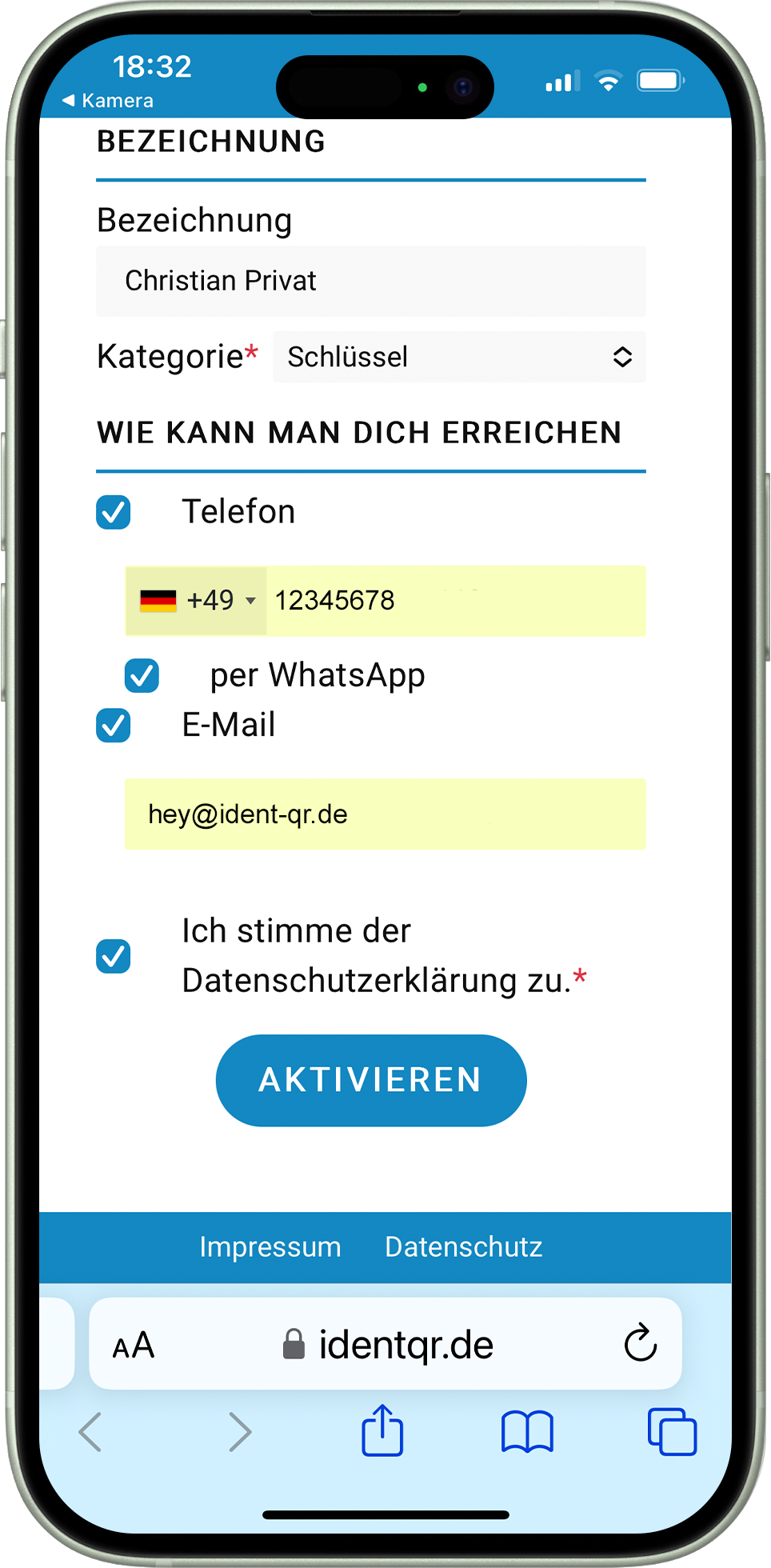 Das Handy mit dem Du einen IDENT-QR aktivierst, ist für diesen und weitere IDENT-QRs das „Masterhandy“. Mit dem Masterhandy kannst Du bei erneutem Scan Deines IDENT-QR sämtliche Einträge in wenigen Sekunden ändern. Tipps hierzu findest Du am Ende der Anleitung.