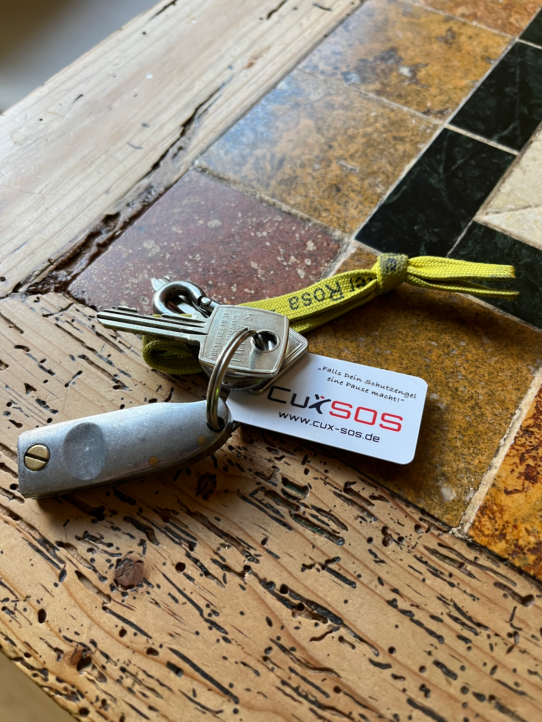 Da der Rettungsladen direkt um die Ecke meines Bistros Butter-bei-die-Fische liegt, wurde meine ganze Familie von mir mit Codes ausgestattet. Jetzt haben meine Frau und ich ein viel besseres Gefühl. Aus Freude & Überzeugung verschenke ich die Anhänger an alle meine Gäste, nicht mir meiner Werbung, sondern mit Cux SOS.